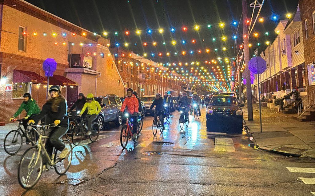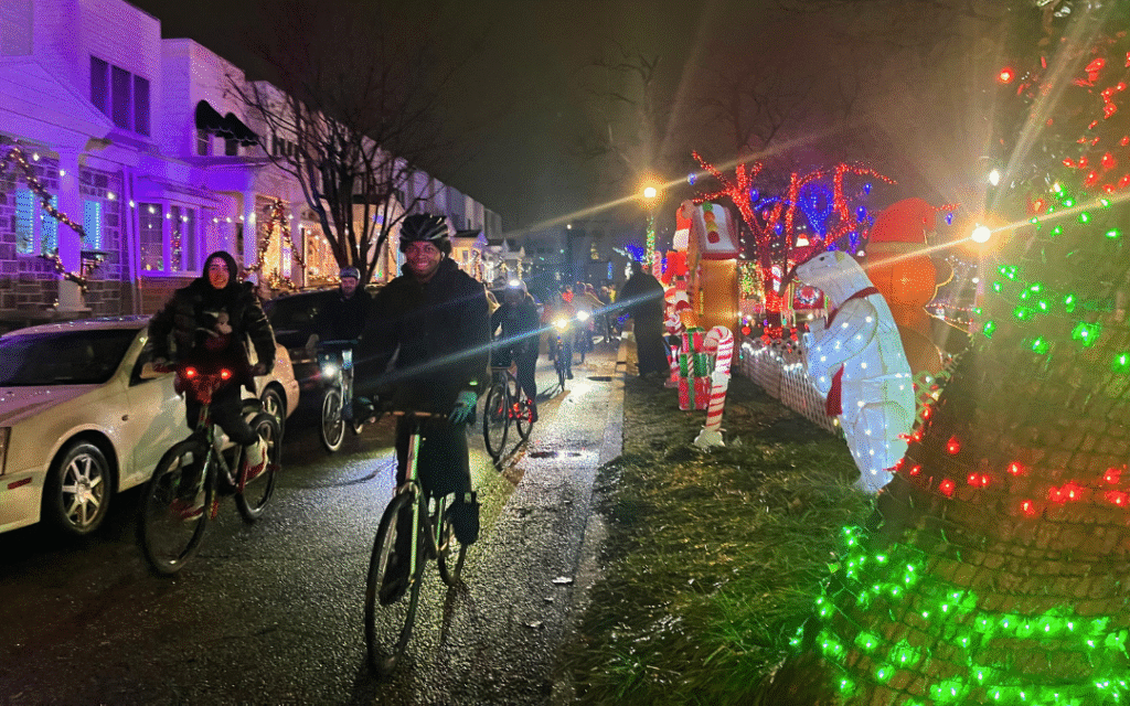 This ride would not have been possible without our more than twenty volunteer marshals, including members of Wednesday Night Rides and youth cyclists from BCYC. If you were there, THANK YOU for bringing your best festive spirit! We are overjoyed to have so much participation in this ride—Holiday Lights has been a hallmark of the Coalition’s programming for years, at its core an essentially Philly experience, eagerly anticipated and fun for both staff and across families in our community.