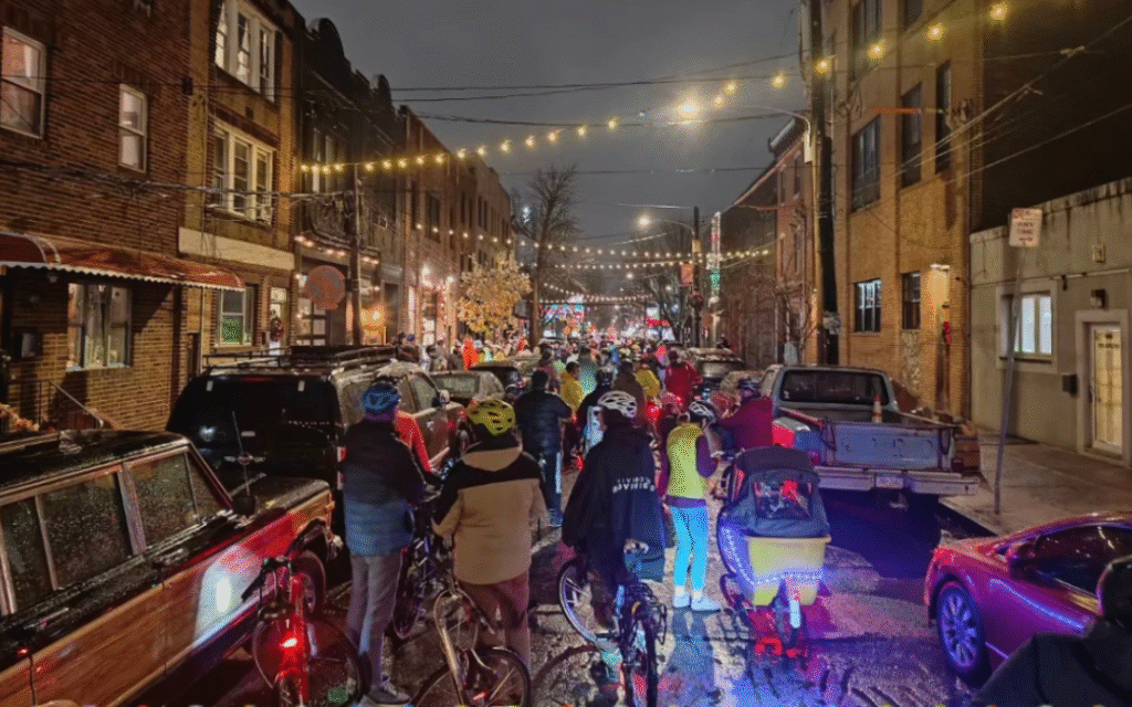 Decked in their holiday finest, over 400 cyclists joined BCGP and our friends at Wednesday Night Rides in South Philly for a 7-mile loop that included the beautiful street displays on 2nd and Mifflin, the legendary loops on South Colorado and South Smedley, and the iconic Miracle on 13th Street.