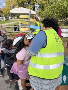 Thanks to the support of PECO, Emmanuel and a total of 28 kids received free helmets and bike lights and education on how to properly wear a helmet at the third annual Bike Safety & Community Fair at the Lil’ Philly Safety Village last Saturday, October 21st, 2023. We also raffled off a kids bike, thanks to the generosity of AmeriSource Bergen. Additional thanks to our partners; Tree House Books for giving out books on the Bookmobile, Safe Routes Philly, Hunting Park Community Garden, North 10, Kaboom, and thanks to our volunteers and Play Ambassadors, Tanaya and Angela, and DJ India for making the event come alive!